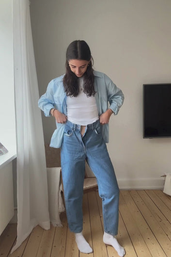 Calças de ganga elegantes e confortáveis da TeeShoppen. As calças de ganga da TeeShoppen facilitam a criação de um conjunto moderno num instante. Encontre o par de calças de ganga perfeito para completar o seu visual e o seu guarda-roupa.Aqui vê calças de ganga na cor azul.